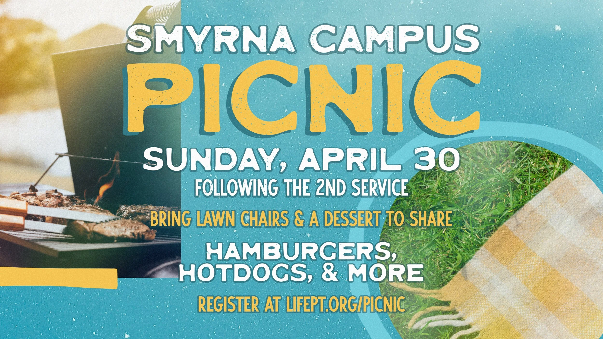 Join us on April 30 after the 2nd gathering for a Campus-wide picnic. We are going to have hamburgers, hotdogs, and more. Be sure to bring your lawn chairs and a dessert to share.