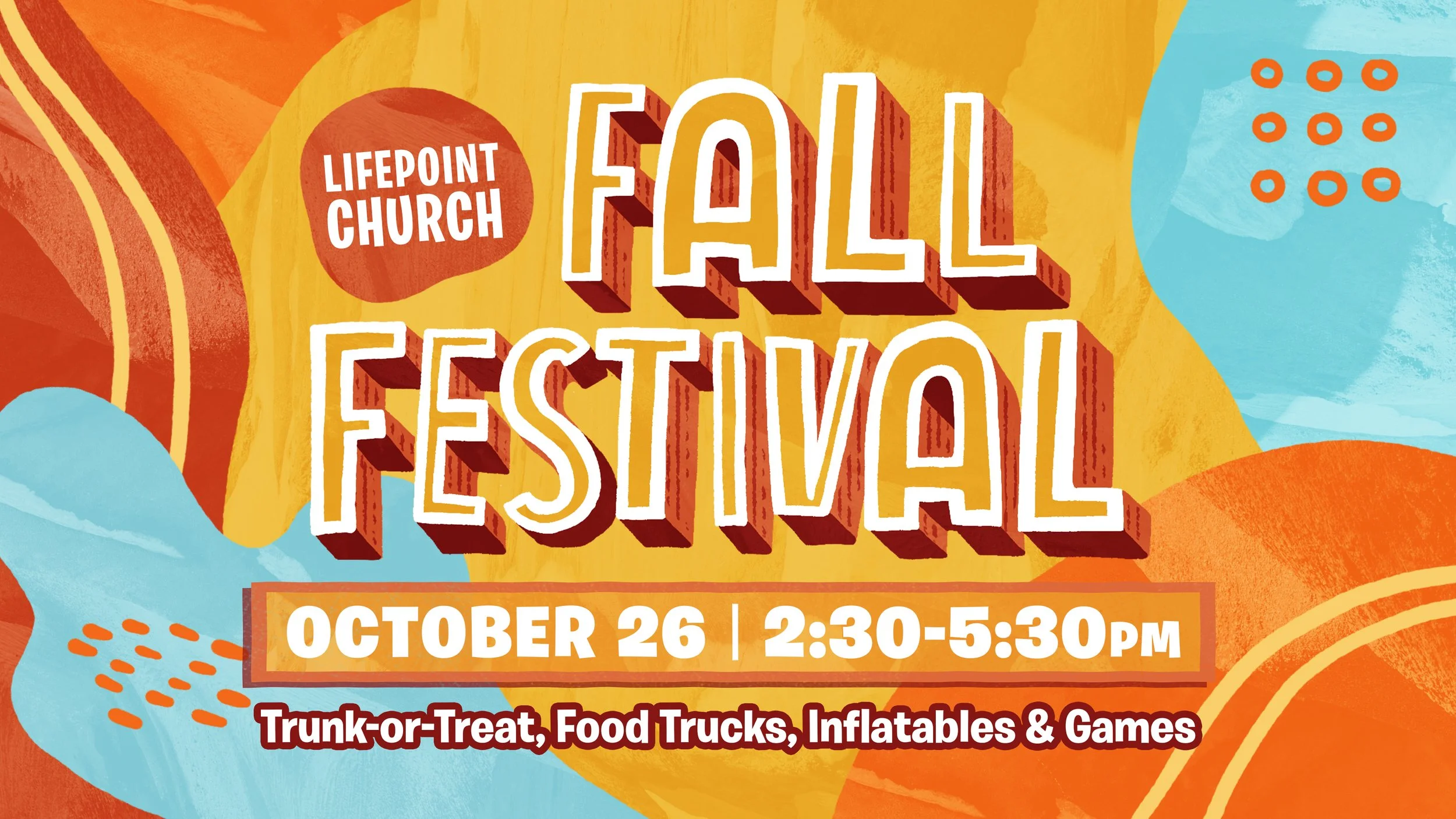 We want to invite your entire family to join us at Fall Festival on Sunday, October 26 from 2:30–5:30pm at the Smyrna, Stewarts Creek, Riverdale & Redemption City Campuses. This FREE event will have inflatables, trunk-or-treat, games, and food trucks (for purchase).